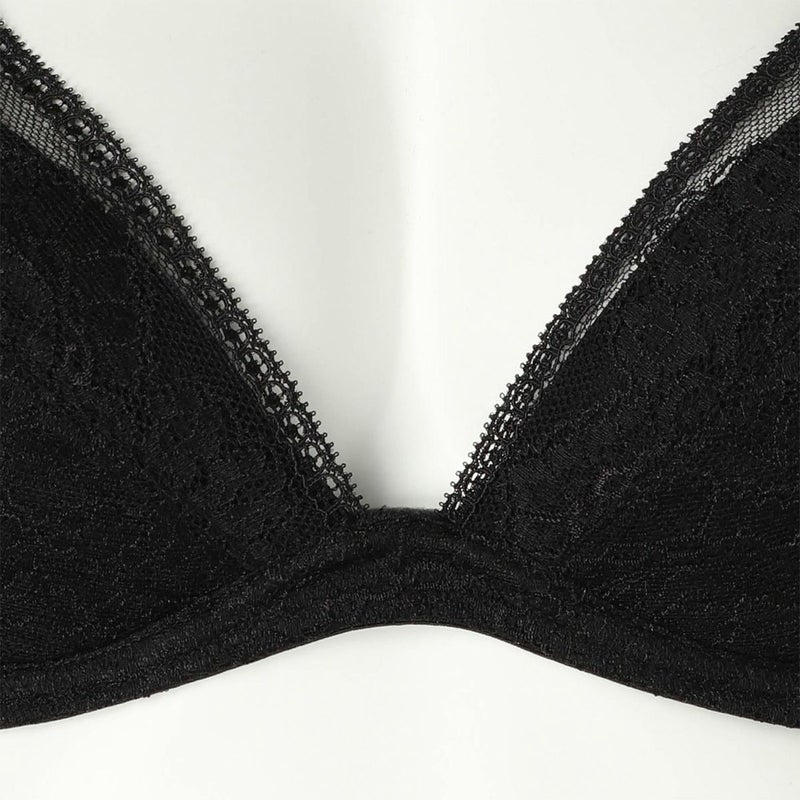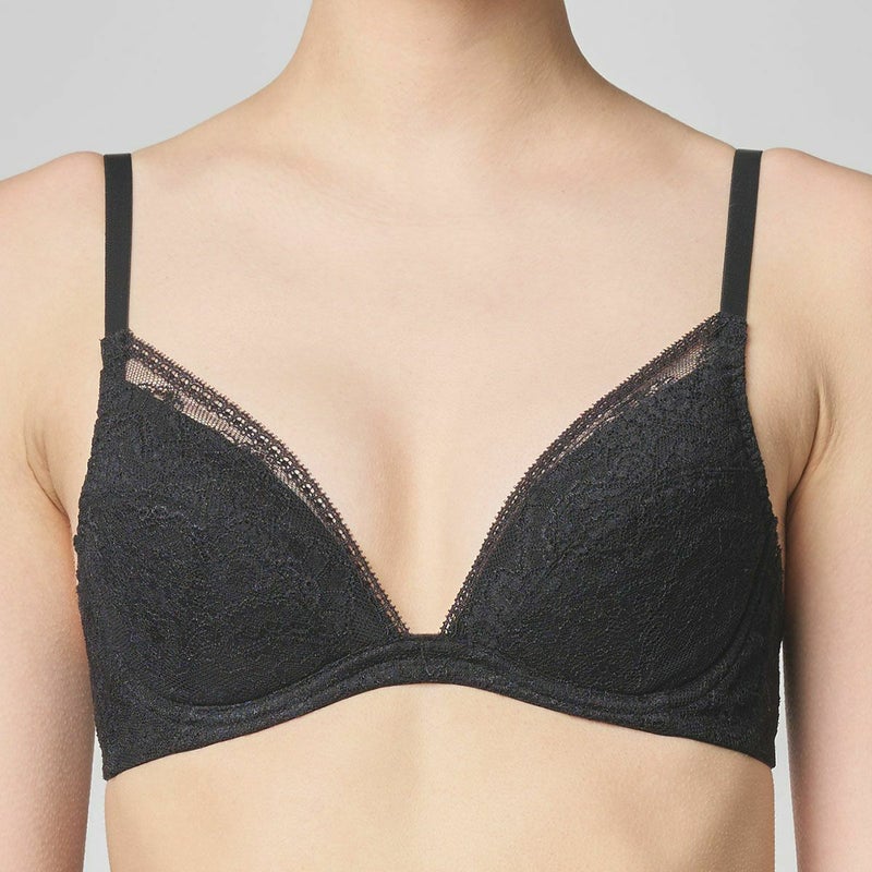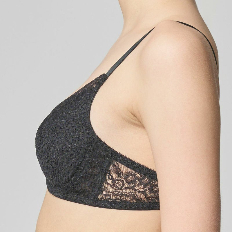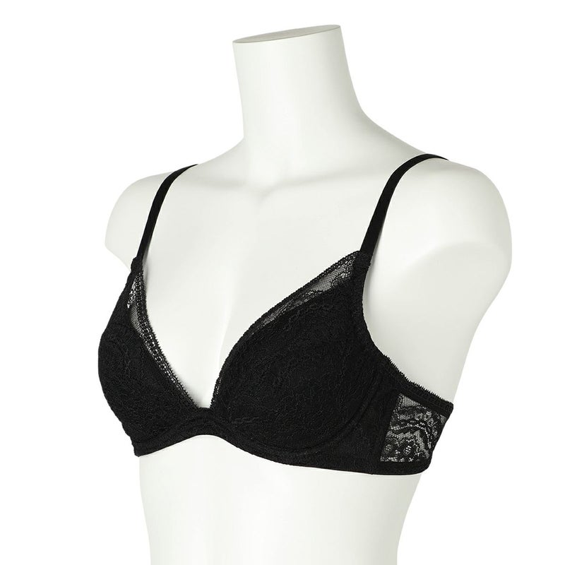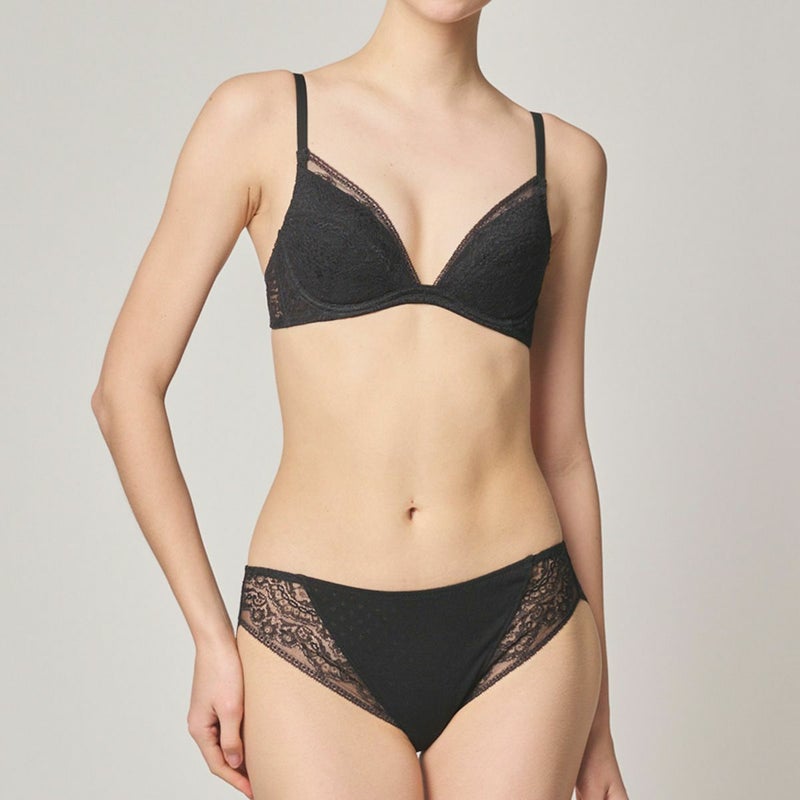 高い天井で店内全体が巨大なテラスのように開放的なアールデコ様式の代表的な歴史的建造物。 新たな出会いと発想を求め人々が楽しんだ場所、カフェ ”ク―ポール”からインスパイアされたシリーズ。 細部まで繊細な柄を描いたフランス製のリバーレースは、直線的なスカラがアールデコのムードを醸す。 全面レースの優美で軽やかなルックスが魅力。 前中心に立ち上がりの無い L字型のワイヤーとサイドボーンで脇をスッキリと見せつつ、 カップ上辺はスカラ使いで胸元を美しいレースのディティールが彩る。カップ肌側は綿天竺。