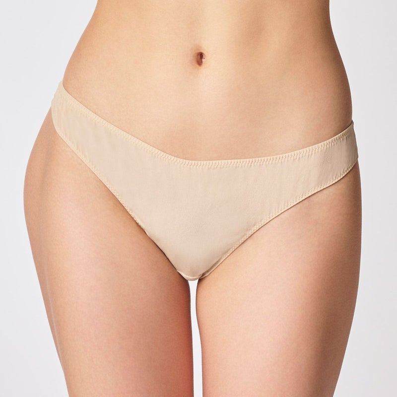 MUSETTE ミュゼット ブランドを象徴するベースライン " 纏うヌード " と題し 日常の様々なシーンが満たされるよう、充実したラインナップになりました。 敏感な肌を包むショーツは、上質なシルクの着用感をより一層実感して頂けます。 後ろの足ぐりにゴムを使用せず、布地の伸縮でヒップに優しく沿う為、 ショーツラインが響きにくく 軽やかで快適な着用感。