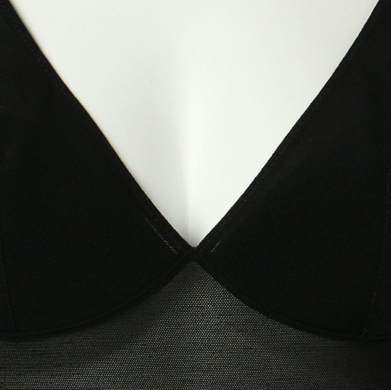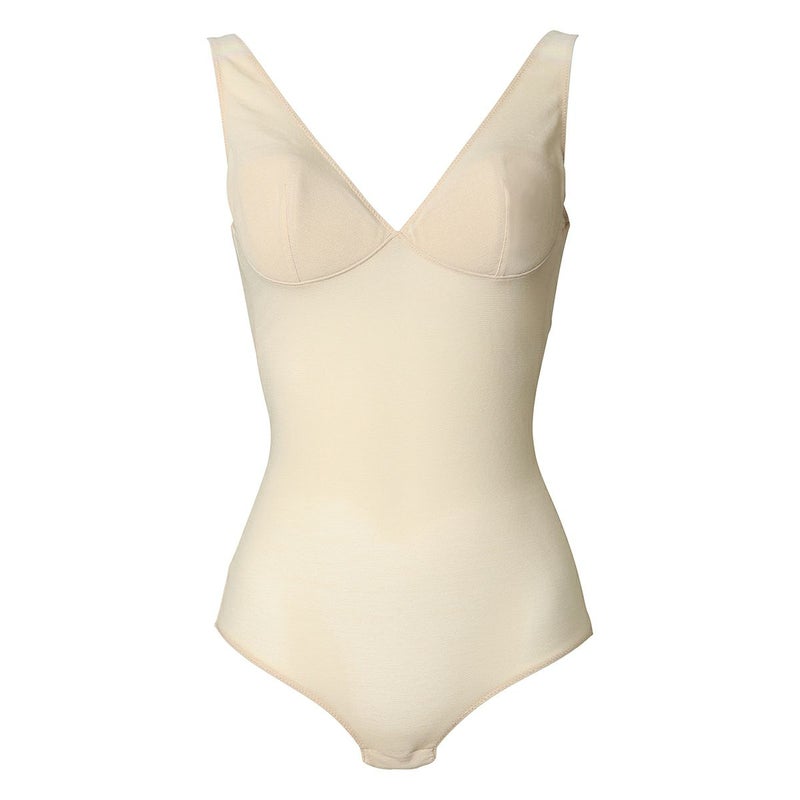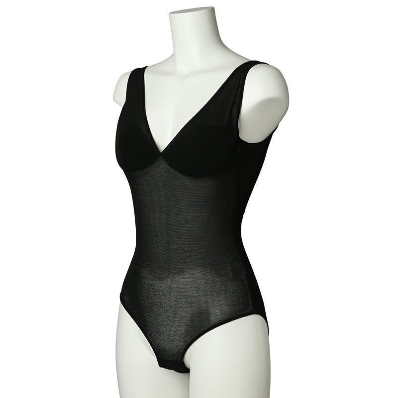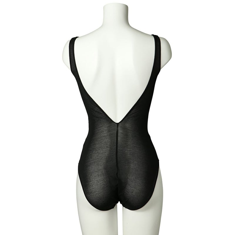 大胆にカッティングしたバックスタイルにカップ部分にパットのついたボディスーツ。