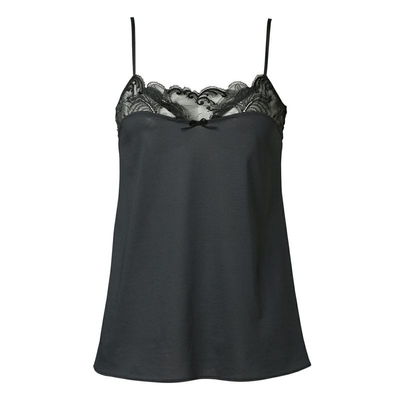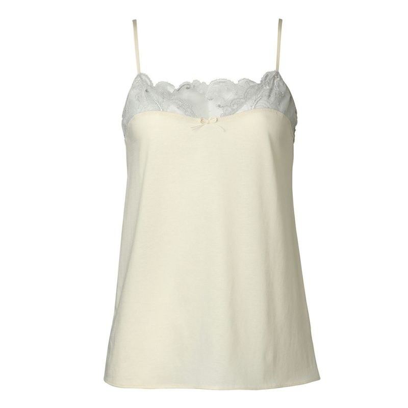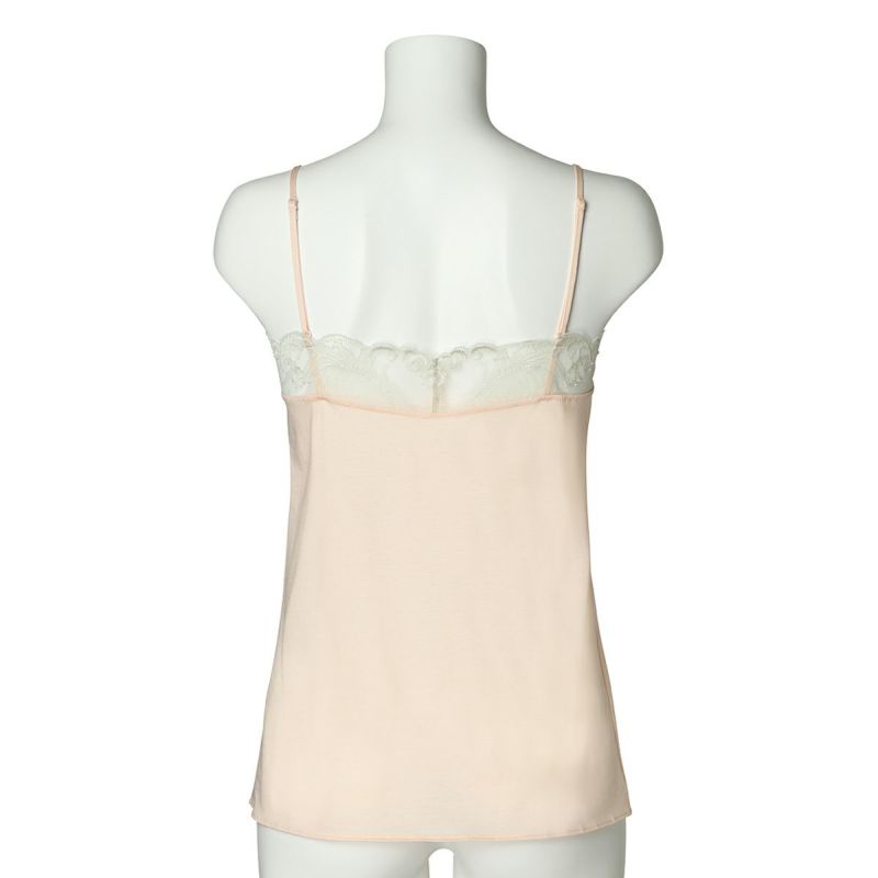 レースのスカラが胸元・背中の上辺を優美に彩る。