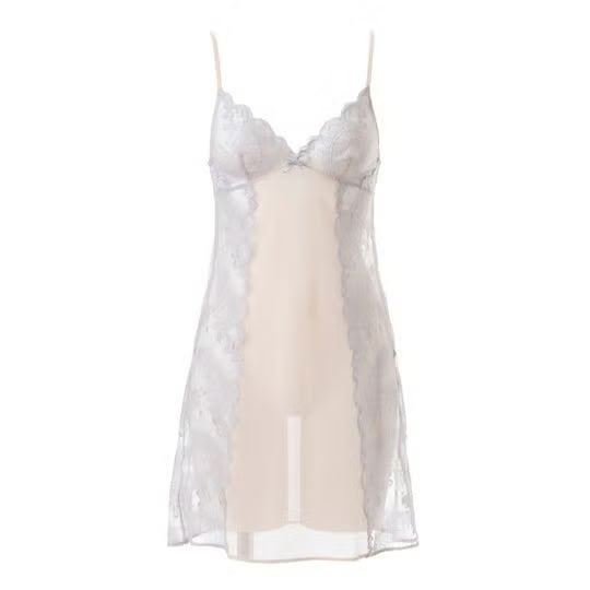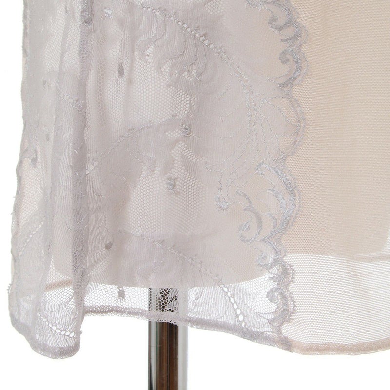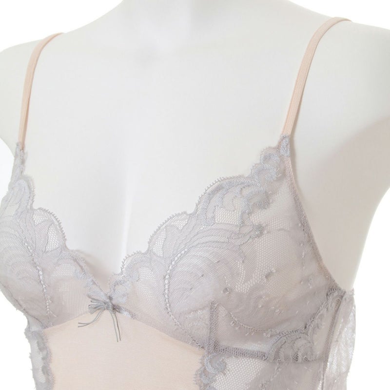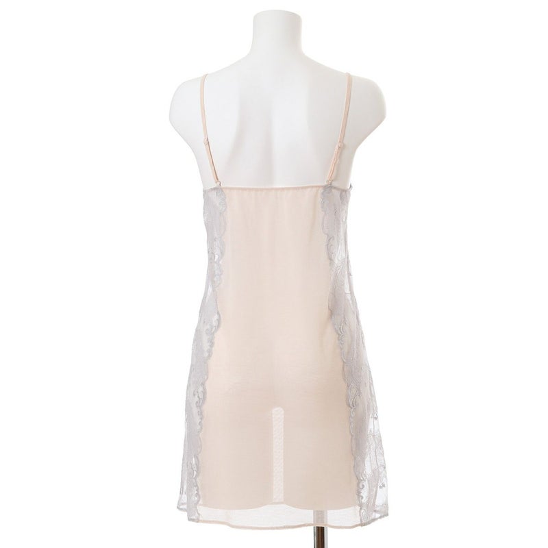 サイドの羽根柄ストレッチリバーレースの透け感が美しいスリップ。身生地は綿混パワーネットを使いサラッとした着用感。体に沿うラインでワンピースのインにぴったりです。ストラップも綿混パワーネットを使用。