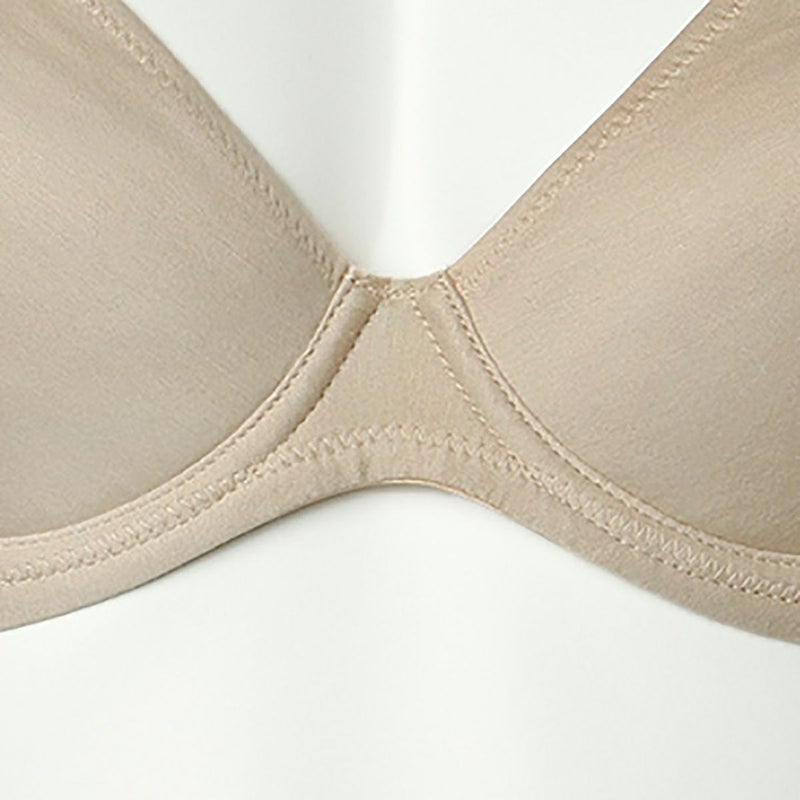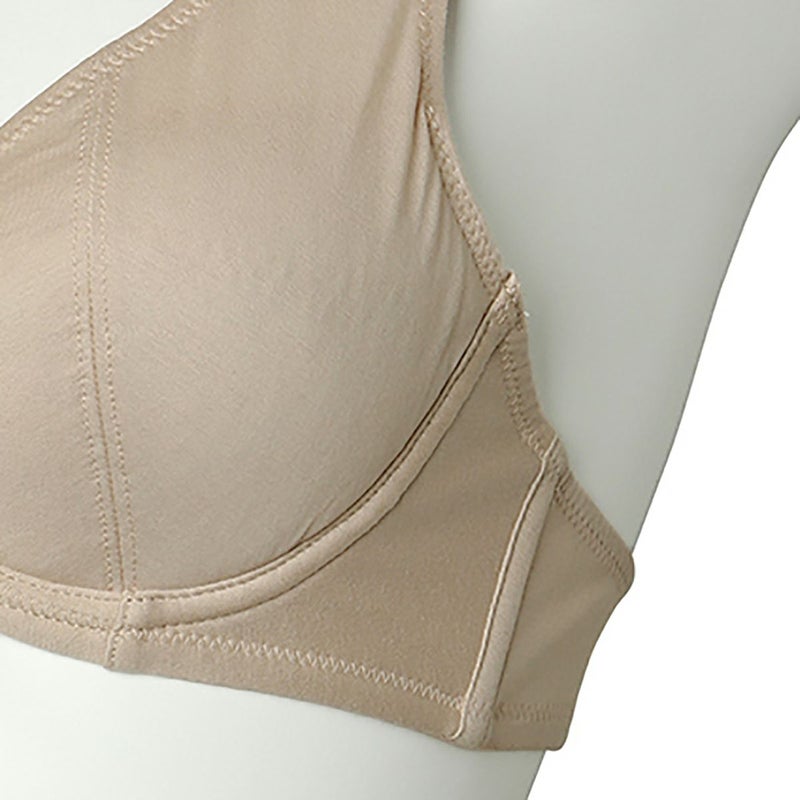 こだわりの細番手オーガニックコットン糸でハイゲージに編まれた天竺ニットは 優美な光沢が美しい。 カップのサイドから肩までひとつづきの構造、バックストラップも太幅で綿混のものを使用。カップ肌側はオーガニックコットン。 クラシカルなシルエット・洗練された素材のコンビネーションで、安定感のある着心地を兼ね備えた逸品。