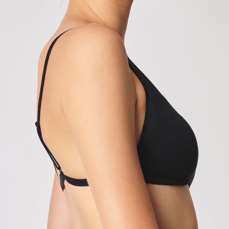 こだわりの細番手オーガニックコットン糸でハイゲージに編まれた天竺ニットは 優美な光沢が美しい。 ウレタンカップを内蔵し 肩まで続いたフロントスタイルは表も肌面もオーガニック天竺を使用。 バックスタイルは綿混のストラップでミニマルに仕上げ、かぶって着脱する仕様。 ナチュラルでスタイリッシュなアイテムは日常を軽やかに豊かな気持ちにしてくれる。