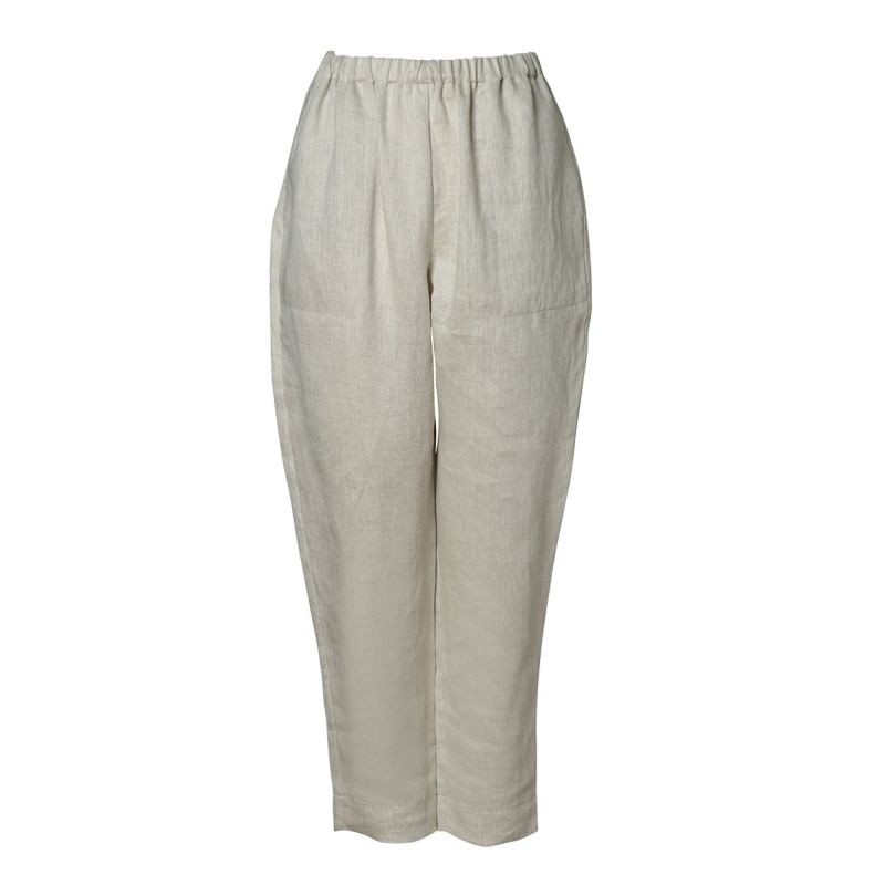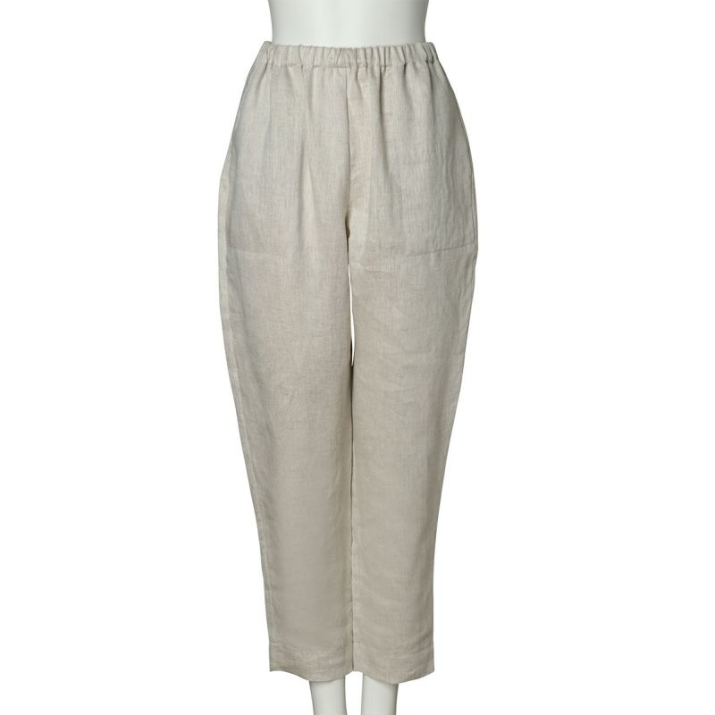 ウエストはゴム仕様・両サイドポケット付きの テーパードパ ンツ。