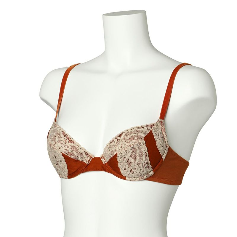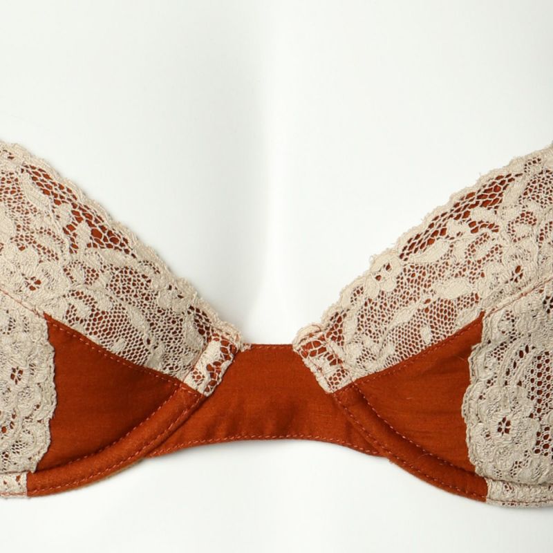 La Dentelière レースを編む女 コットン糸で巧妙に編まれたレースは手工芸の温かみと歴史を感じさせてくれる。 既存のレースで最も伝統的なイギリス・ノッティンガム製のリバーレースを使用。 コットン素材を主体にしたメガネタイプのブラジャー。 ベロアストラップ、ゴールドモチーフが、綿素材のと交わり艶やかなアクセントに。 肌への接触面が少ないメガネ型の軽やかなフレームと、バストを収めた時のフォルムの美しさが魅力。