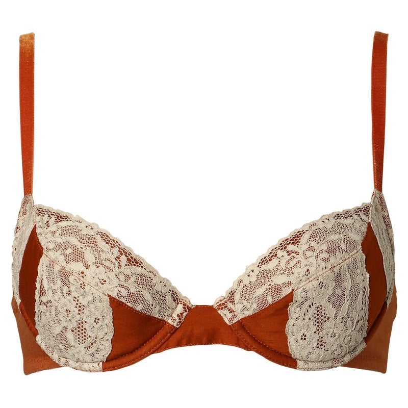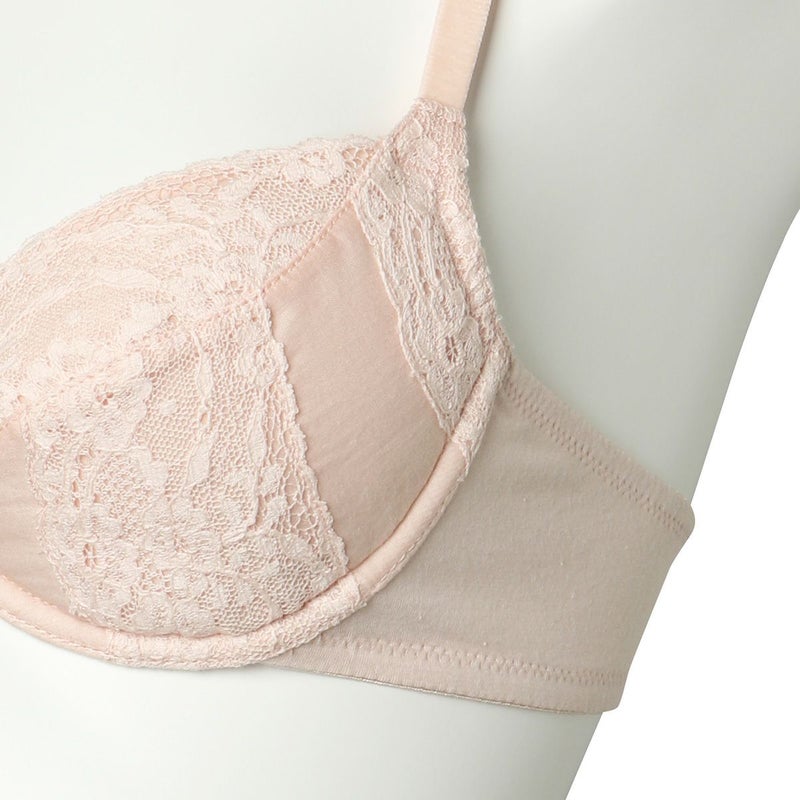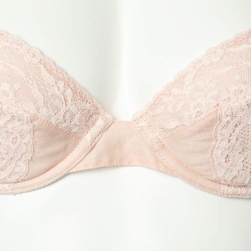 La Dentelière レースを編む女 コットン糸で巧妙に編まれたレースは手工芸の温かみと歴史を感じさせてくれる。 既存のレースで最も伝統的なイギリス・ノッティンガム製のリバーレースを使用。 コットン素材を主体にしたメガネタイプのブラジャー。 ベロアストラップ、ゴールドモチーフが、綿素材のと交わり艶やかなアクセントに。 肌への接触面が少ないメガネ型の軽やかなフレームと、バストを収めた時のフォルムの美しさが魅力。