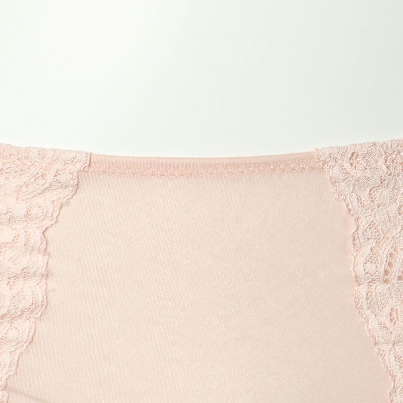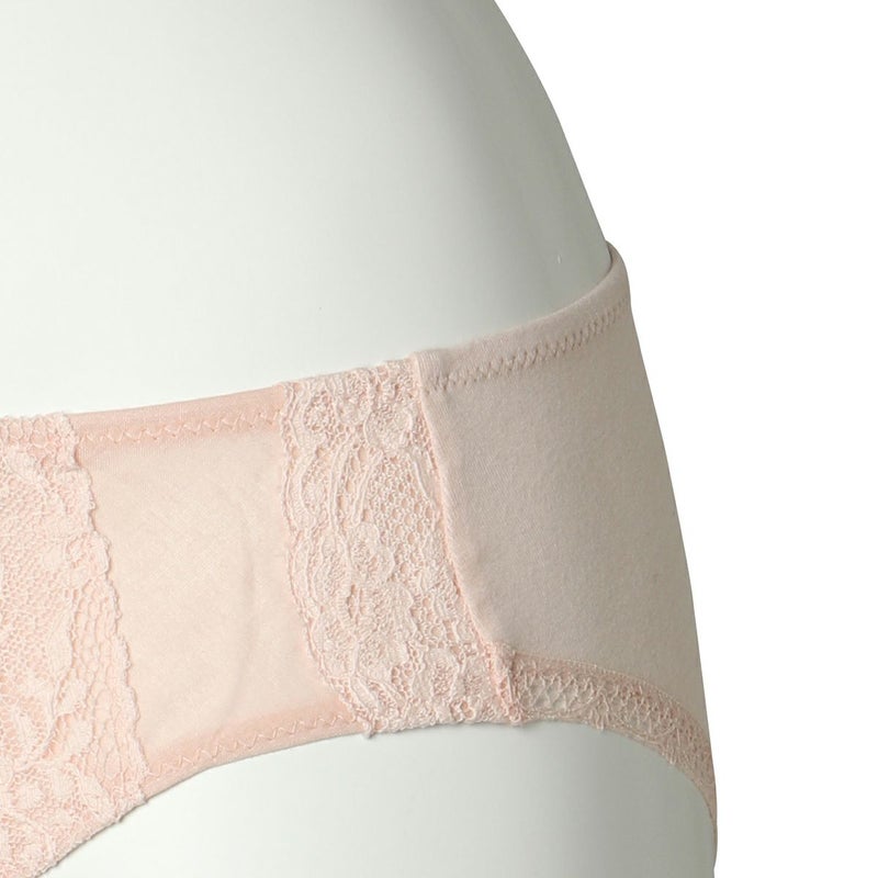 La Dentelière レースを編む女 コットン糸で巧妙に編まれたレースは手工芸の温かみと歴史を感じさせてくれる。 既存のレースで最も伝統的なイギリス・ノッティンガム製のリバーレースを使用。 コットン素材を主体にしたスタンダードショーツ。 後ろの足口にはさりげなく細幅のレースを施した。 綿天竺の柔らかな伸縮性でヒップを心地良く包み込む。