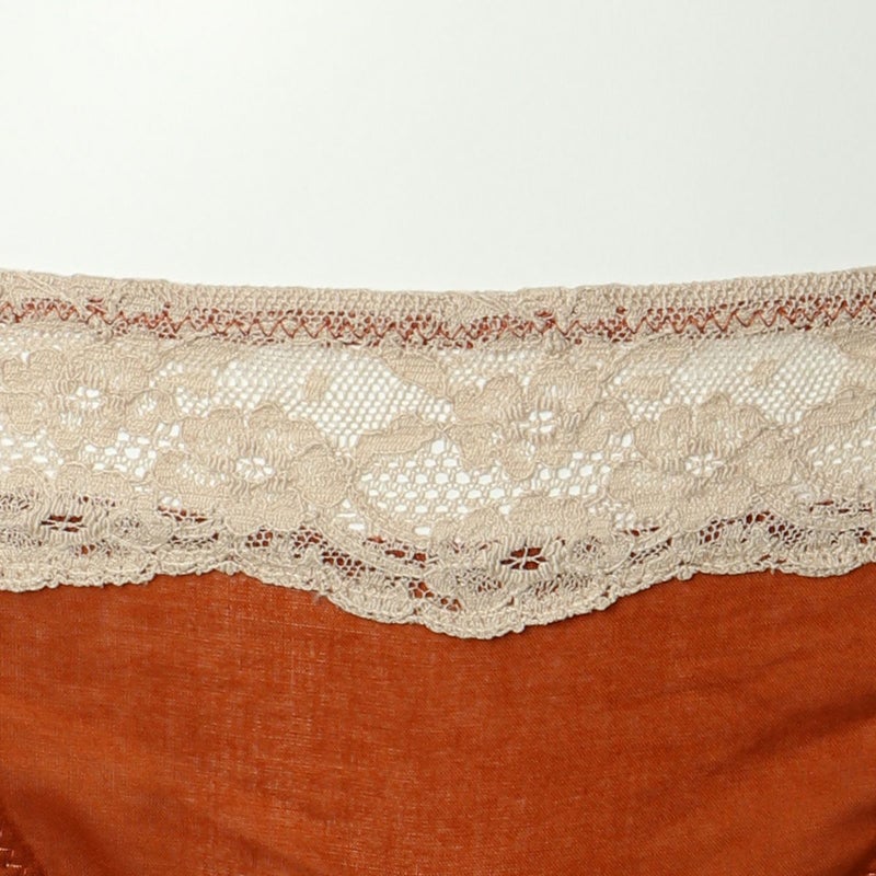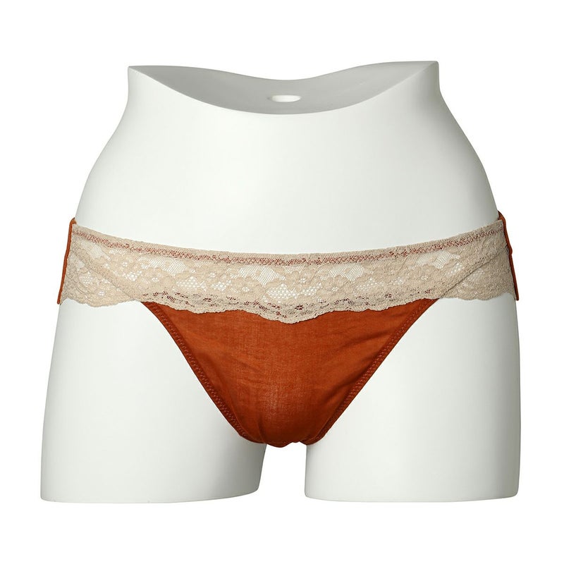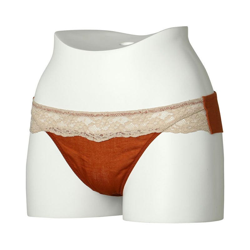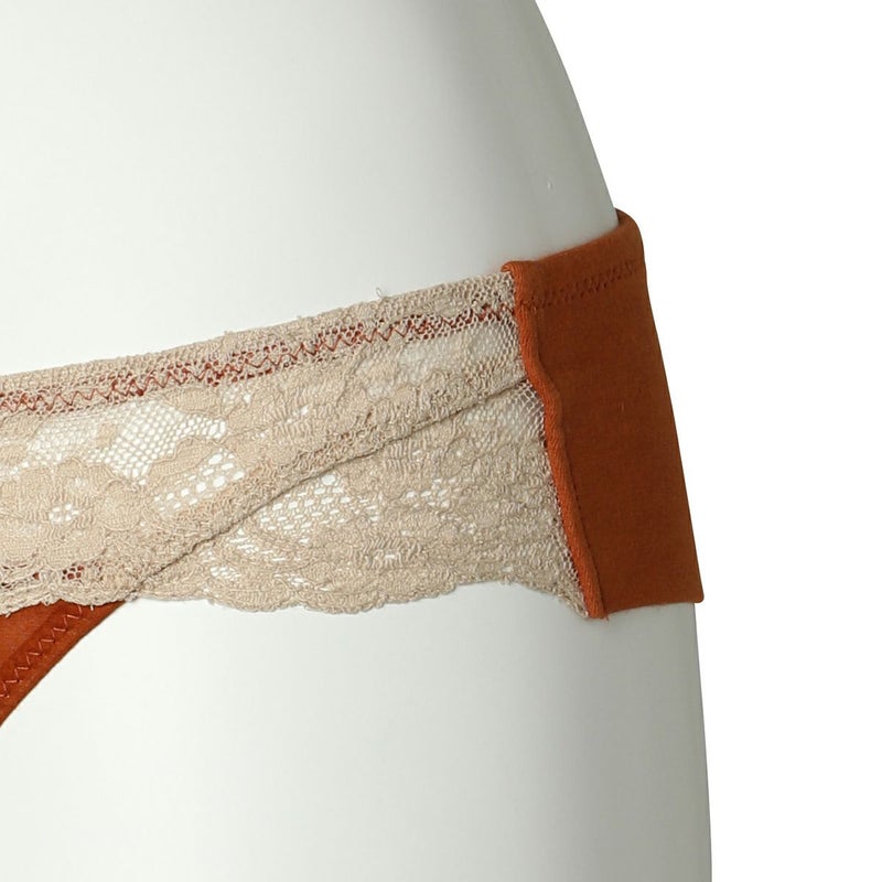 La Dentelière レースを編む女 コットン糸で巧妙に編まれたレースは手工芸の温かみと歴史を感じさせてくれる。 既存のレースで最も伝統的なイギリス・ノッティンガム製のリバーレースを使用。 綿素材の前見頃はウエストをレースで縁取ったデザイン。 後ろ足口にゴムを使用せず天竺を折り返した仕様でヒップにフィットする。 新たな着用感の快適タンガショーツの登場。