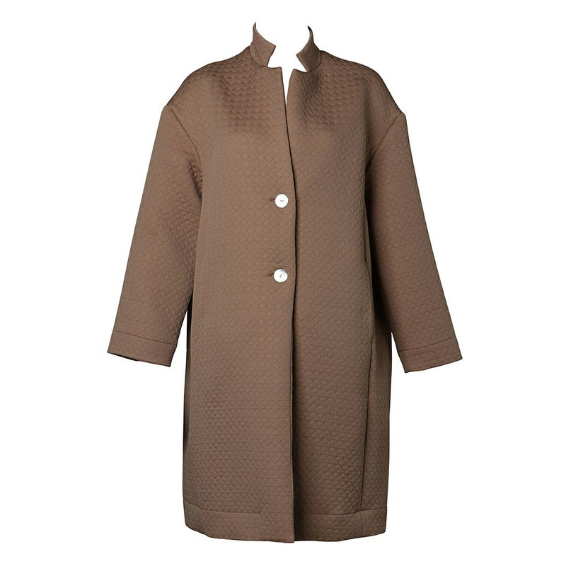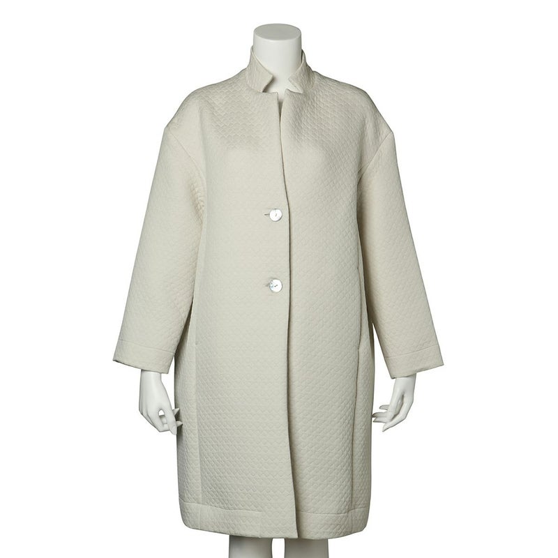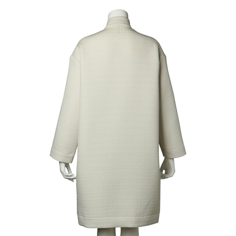 La Dentelière レースを編む女 キルトの様に工芸的な雰囲気で、軽さと温かさを兼ね備えた現代的な素材。 前立て裏を2重に仕立てたロングコート。 柔らかく張りのある素材がボディラインをふわりと包み込みこむようなリラックス感のあるシルエット。 フロントのシェル釦のナチュラルな光沢が、さりげないポイントに。 両サイドにポケット付き。
