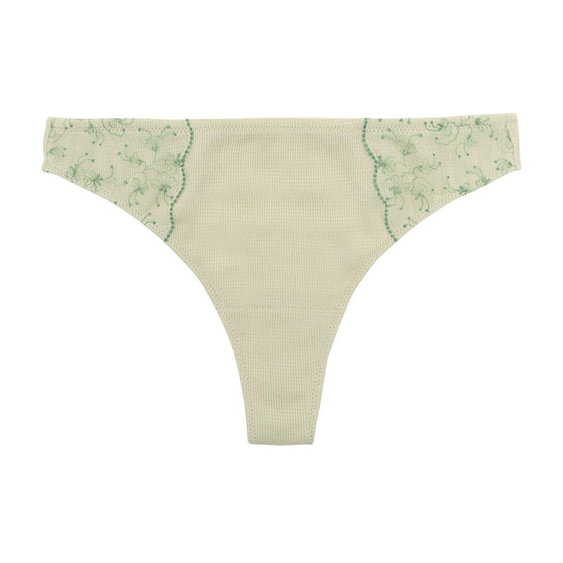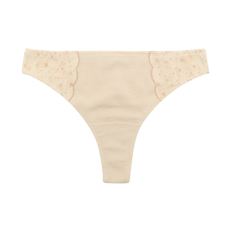 寝ぼけ眼。ソファーのクッションに埋もれながらハーブティと共にゆっくりと目覚める。 チュールエンブロイダリーレースとサーマルコットン、柔らかな素材の組み合わせ。 通常よりも繊細な糸でソフトな風合いに仕上げたこだわりのサーマルを全面に使用。 フロント脇部分にさりげなくエンブロイダリーレースがアクセントに。 サーマルの伸びが良く、肌に優しく寄り添う快適な着用感のタンガ。