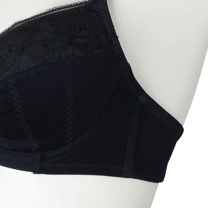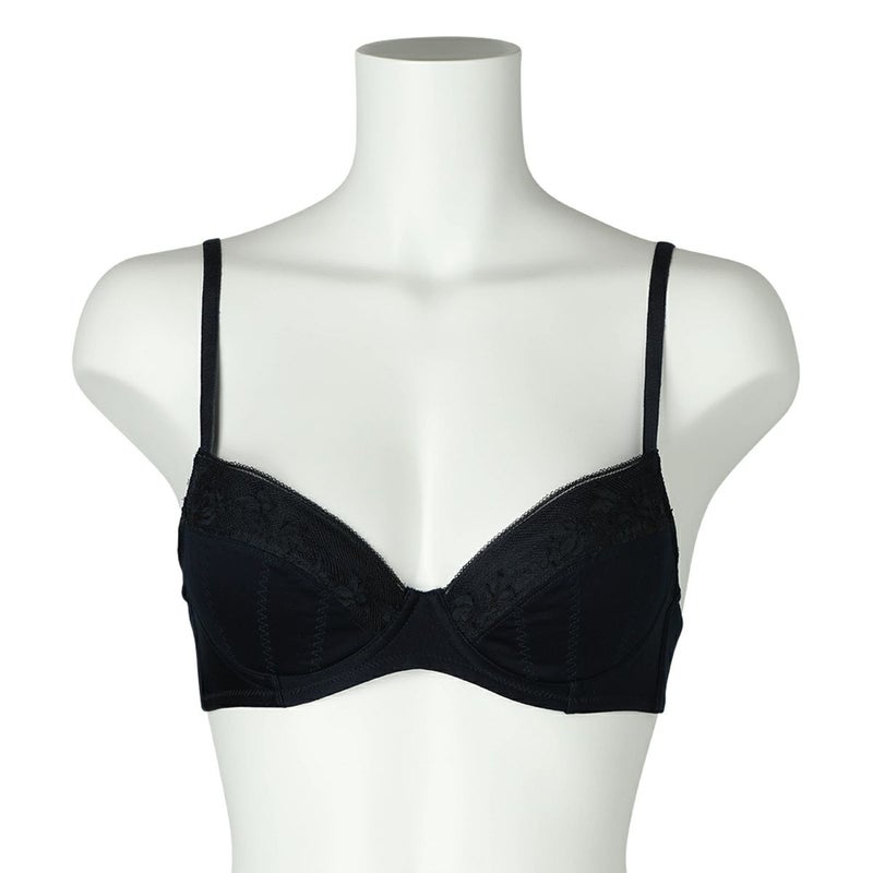 綿混のハイグレードなフレンチリバーレースは不変の魅力を放つ。 オーガニックコットンの天竺を組み合わせレトロモダンなテイストに仕立てた。 オーガニックコットンを主体に綿混ストラップを組み合わせたブラジャー。 上辺にレース、カップに飾りステッチを施しシンプルなスタイルのアクセントに。 天然素材の着心地の良さと優美なデザインは素肌にしっとりと馴染む。