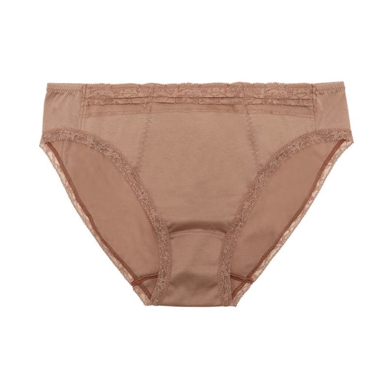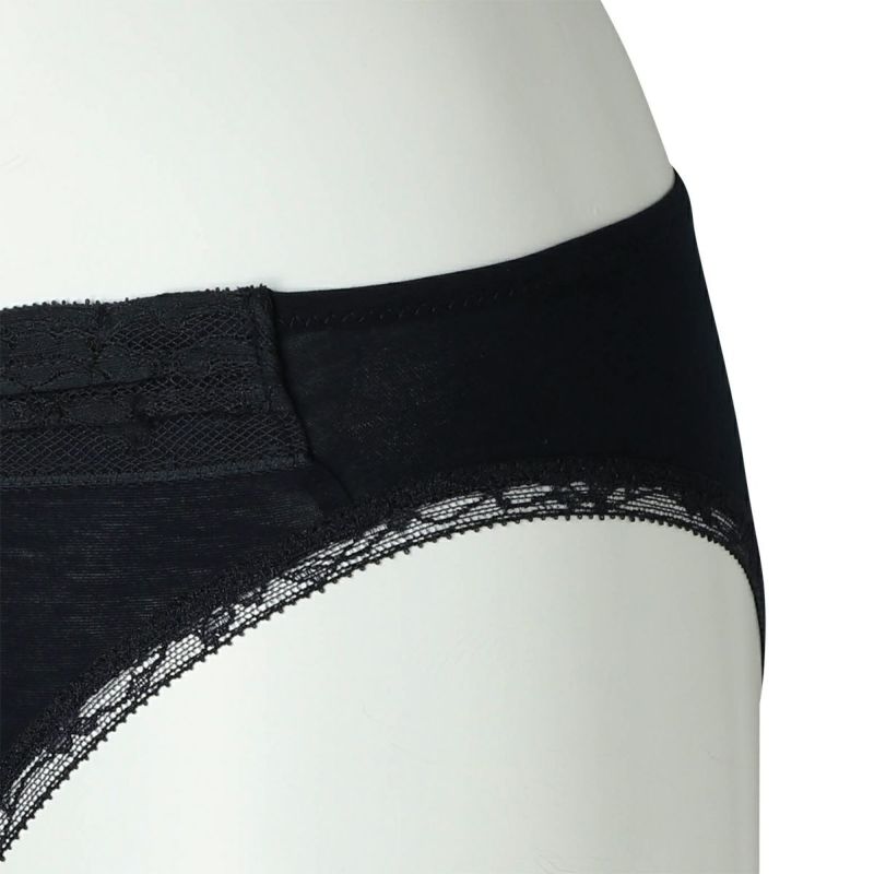 綿混のハイグレードなフレンチリバーレースは不変の魅力を放つ。 オーガニックコットンの天竺を組み合わせレトロモダンなテイストに仕立てた。 オーガニックコットンを主体に前ウエストにタックを施したリバーレースを配し、身頃に飾りステッチを施した。 足口は細幅ストレッチレースをトリミングしフラットな仕立てで締め付けを軽減。 細幅ストレッチレースは柄の美しさにこだわったオリジナルのもの。