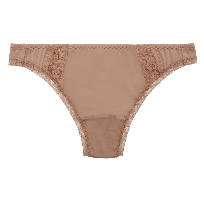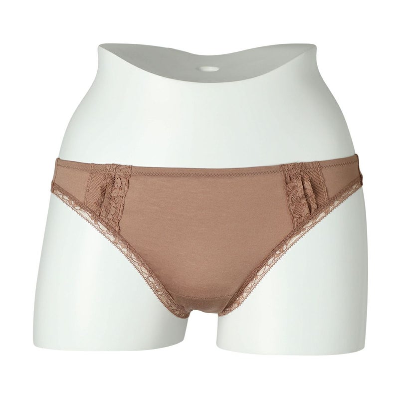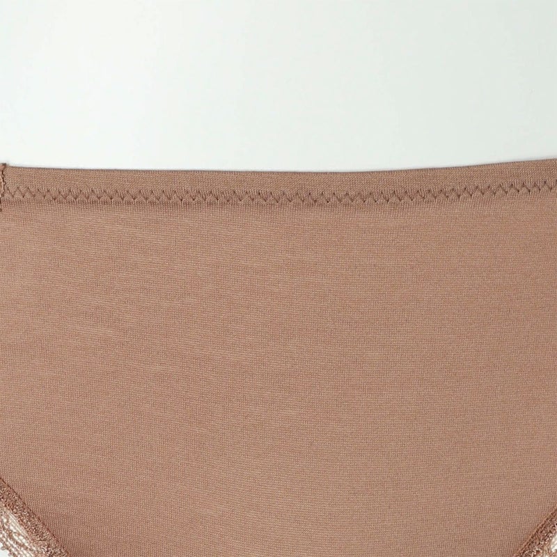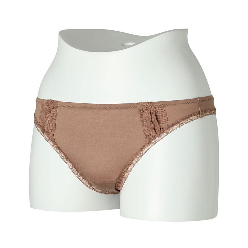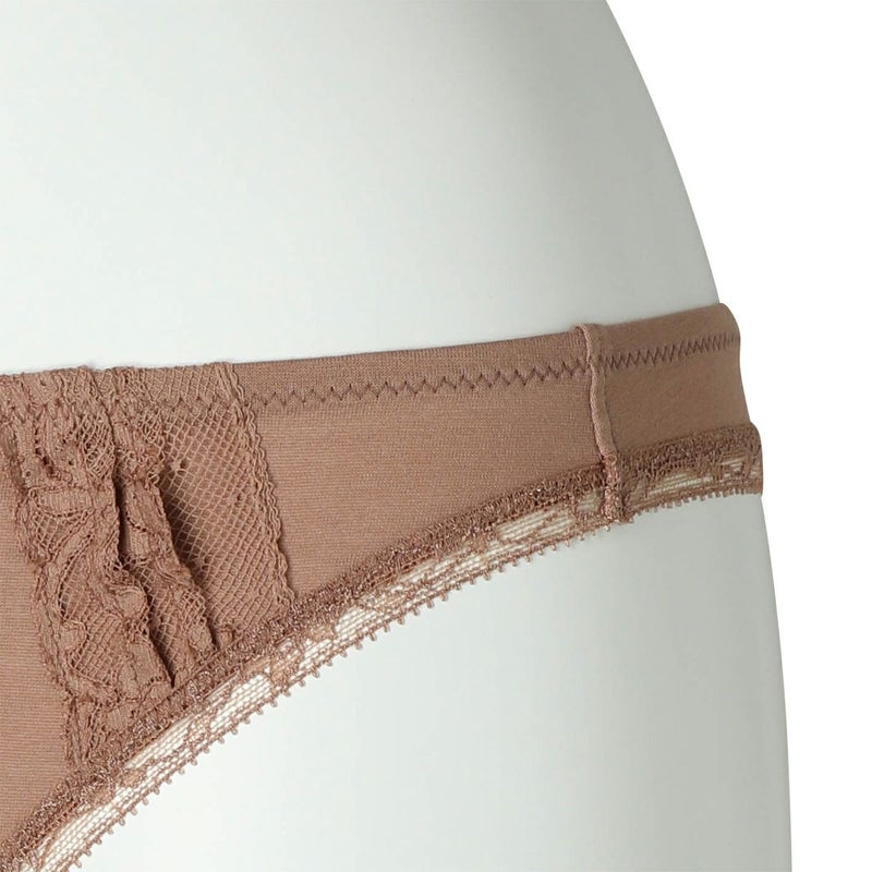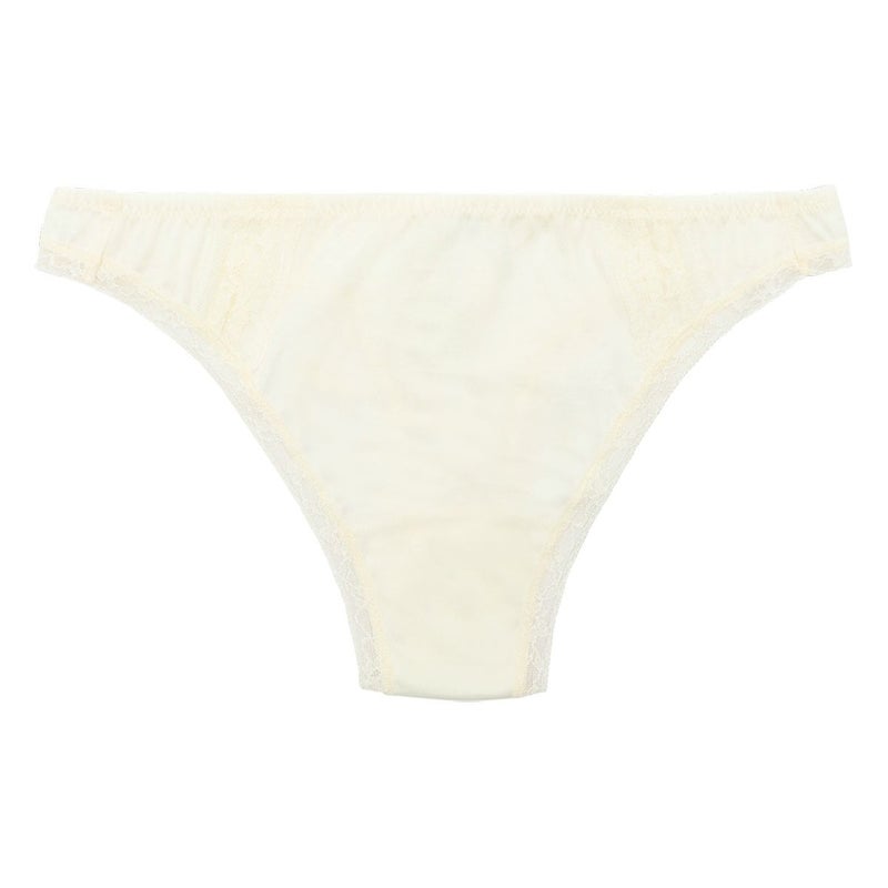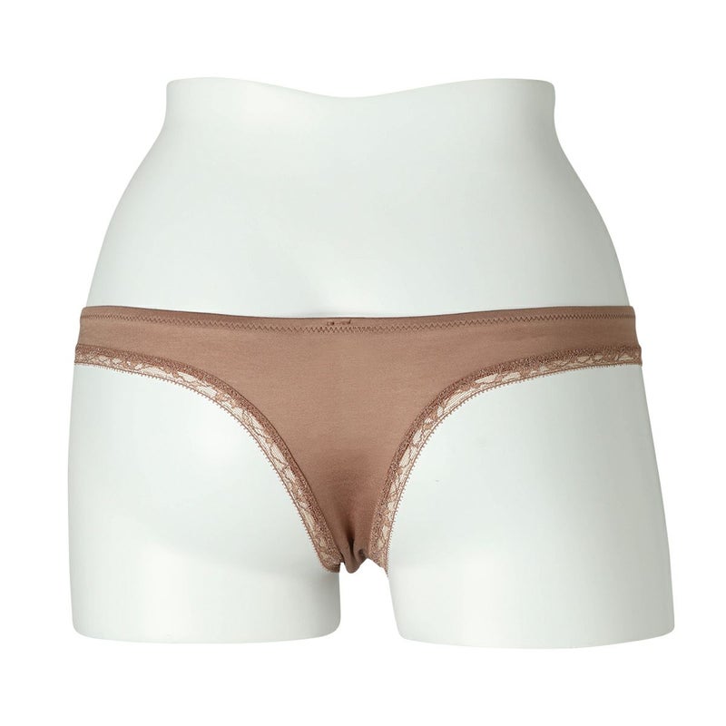 綿混のハイグレードなフレンチリバーレースは不変の魅力を放つ。 オーガニックコットンの天竺を組み合わせレトロモダンなテイストに仕立てた。 オーガニックコットンを主体にリバーレースにタックのディテールを施し、足口は細幅ストレッチレースをフラットな仕立てでトリミング。 締め付けを軽減しヒップにソフトフィットするタンガ。細幅ストレッチレースは柄の美しさにこだわったオリジナルのもの。