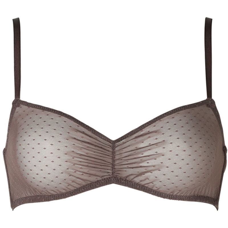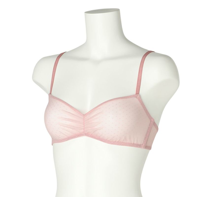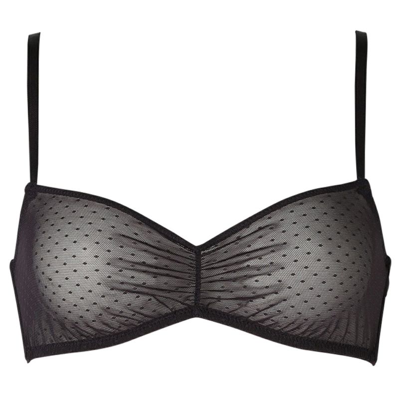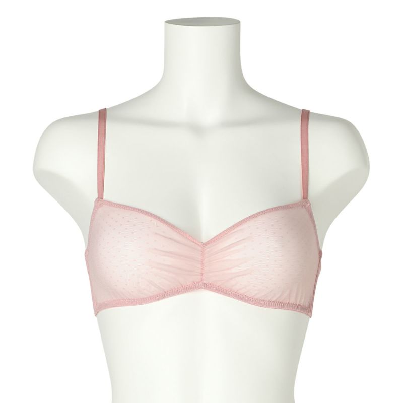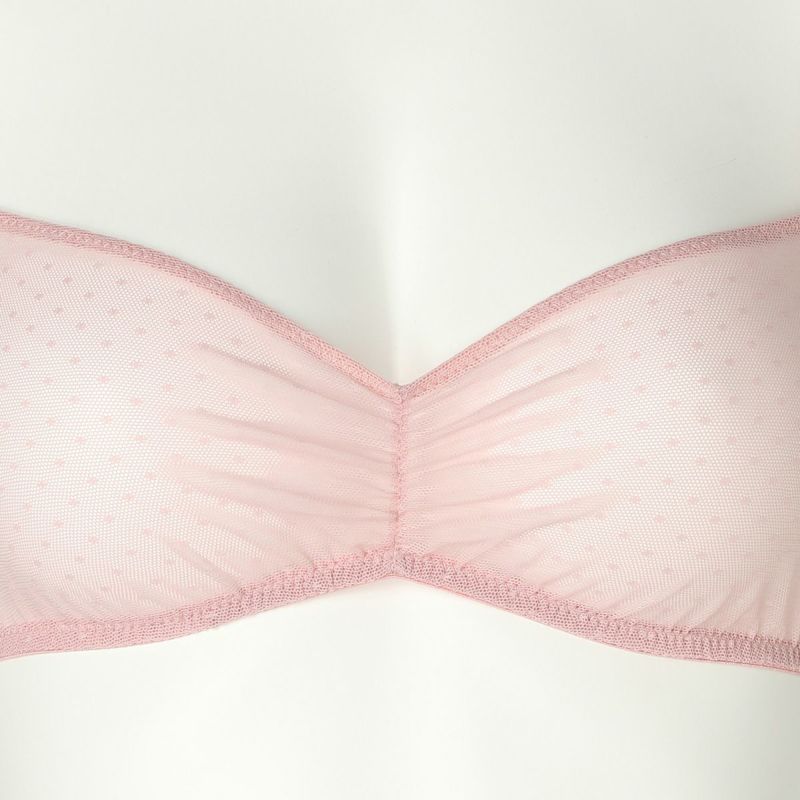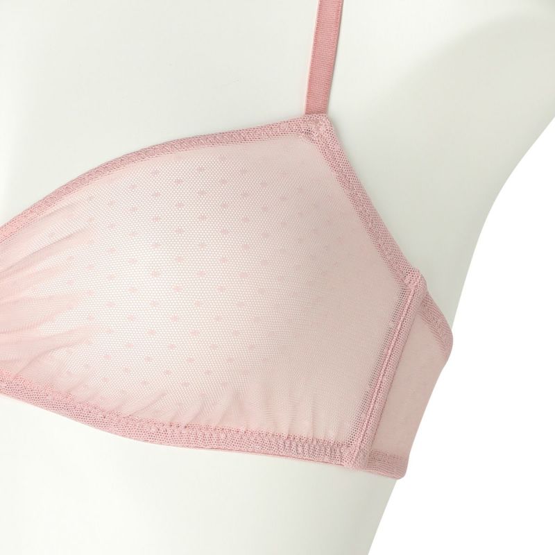カフェに集い 先進的な思想を持った女性達に想いを馳せたコレクション。105=ソンサンクは " カフェ・ロトンド " をイメージしたシリーズ。 細やかな編地でベルエポック時代のムードを表現したオリジナルレースに、ドットのパワーネットとサテン布地を組み合わせた。 全面にドットパワーネットを使用。前中心のギャザーは着用しても保持する様に仕立てた。 ボーンを内蔵することでシルエットをよりスッキリとモダンに見せる。