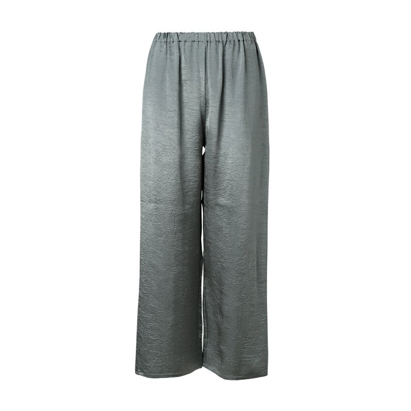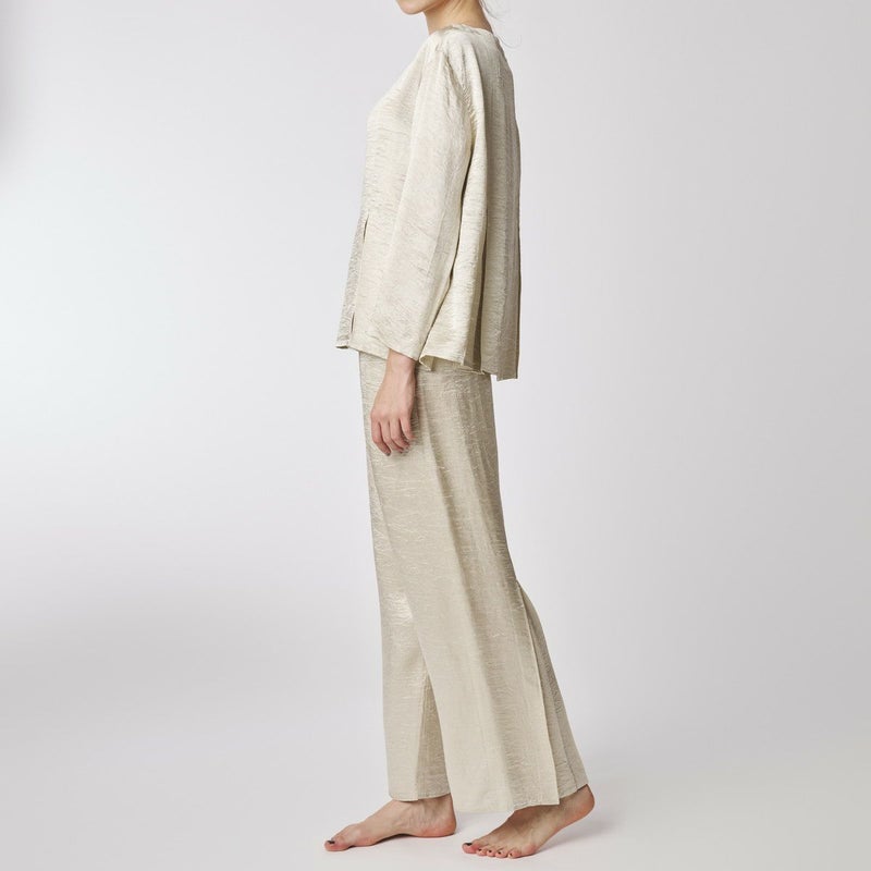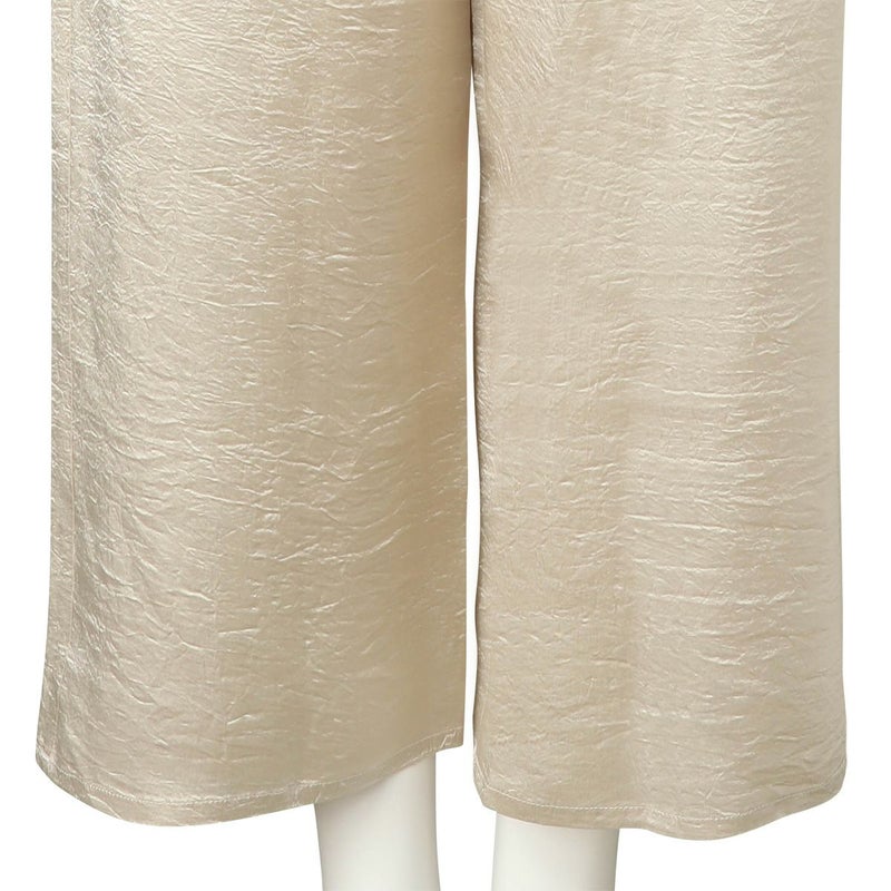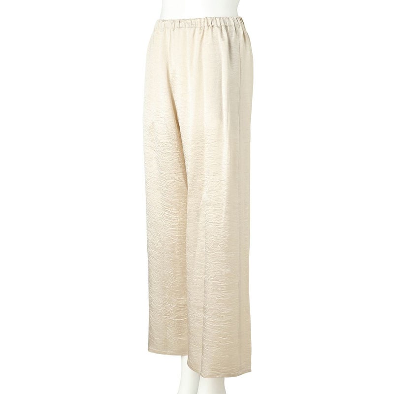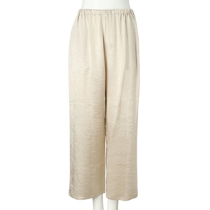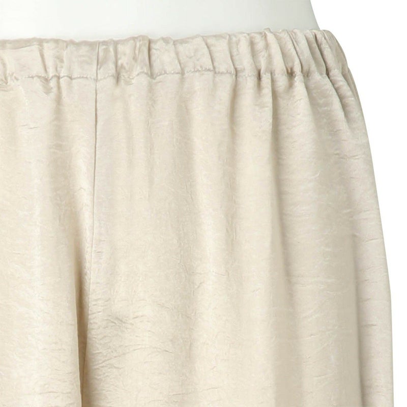 吸水性・速乾性に優れた素材にナチュラルなシワを施したサテン布地。 深く折り込んだボックスプリーツが身頃の動きによってフォルムにアクセントをもたらす。有機的な運動の美学。 後身頃、左右の中央にボックスプリーツを施したボトム。 滑らかな質感でシワ加工を施した布地は、初めから着馴染んだ様なリラックス感のあるウエア。 身体の動きが生むプリーツの揺らぎと布地の光沢がアクセントに。