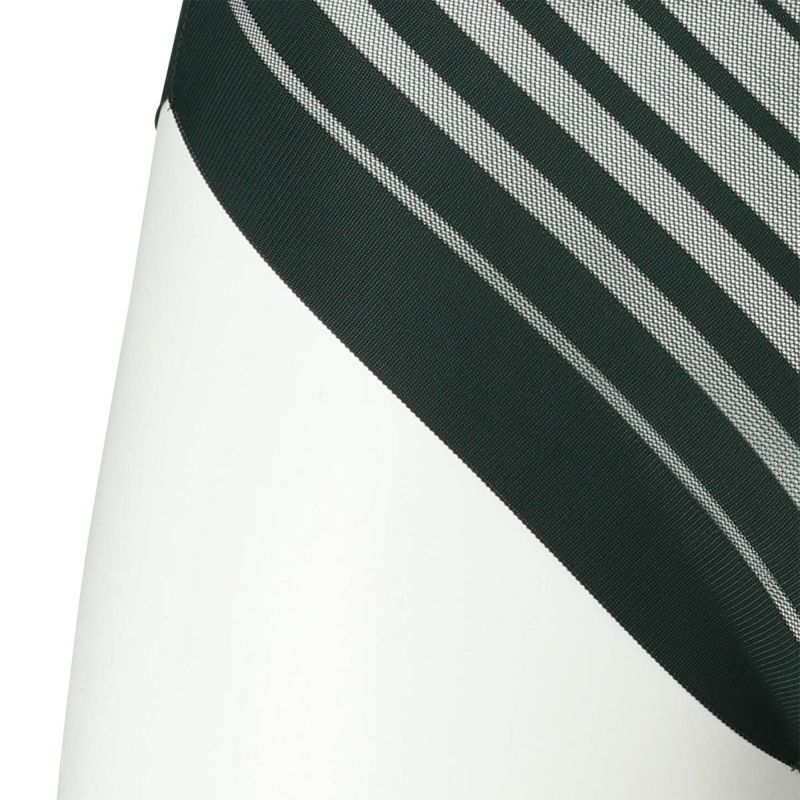 ルーチョ・フォンタナの作品にインスパイアされたコレクション。 - キャンバスを切り裂く- ボーダー柄のストレッチレースはエッジのフラットさを活かし軽やかに仕立てた。 前・後足口にレースのフラットなエッジを使用。 足口ゴム無しでアウターにラインが響かず、レースから覗く肌もスタイリッシュな印象に見せる。 マチ肌側は綿天竺使い。
