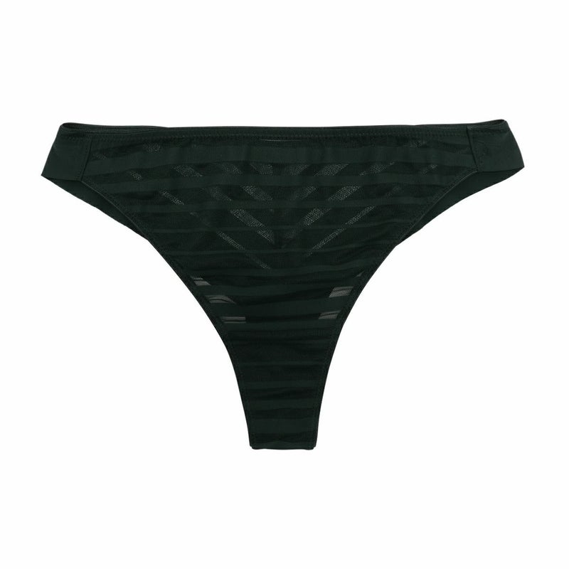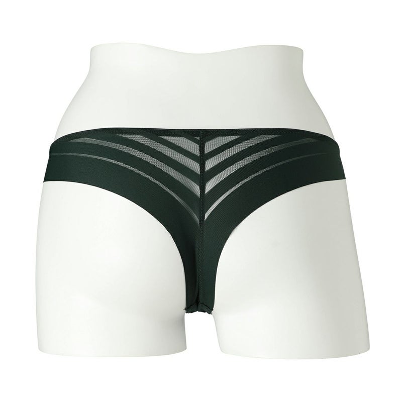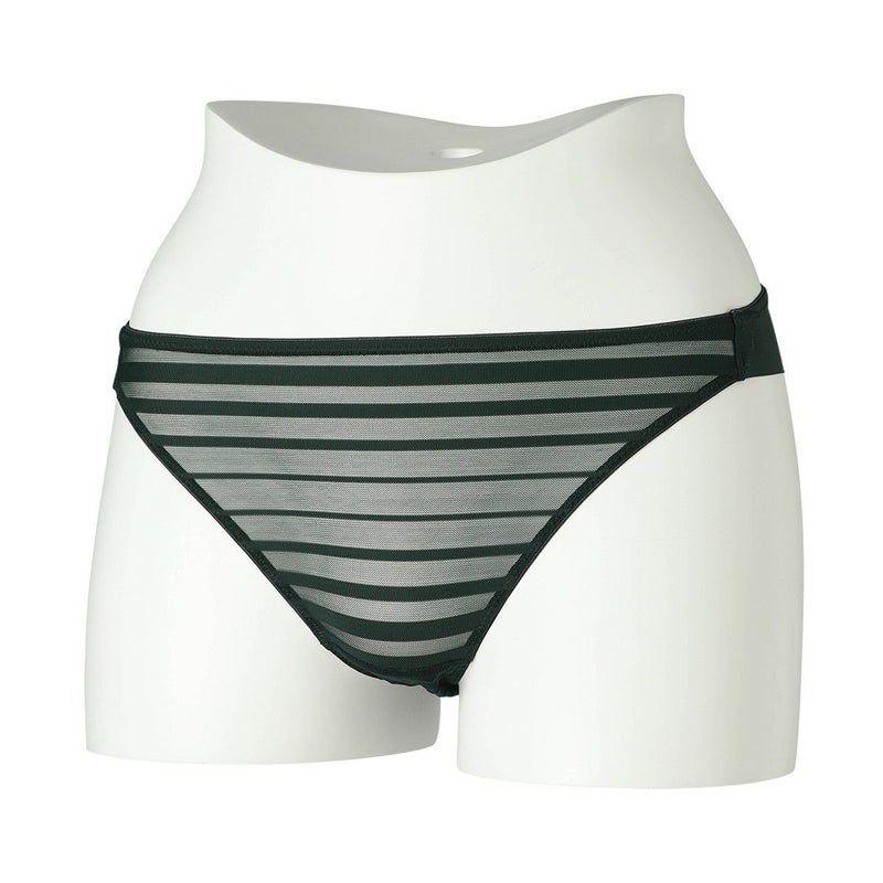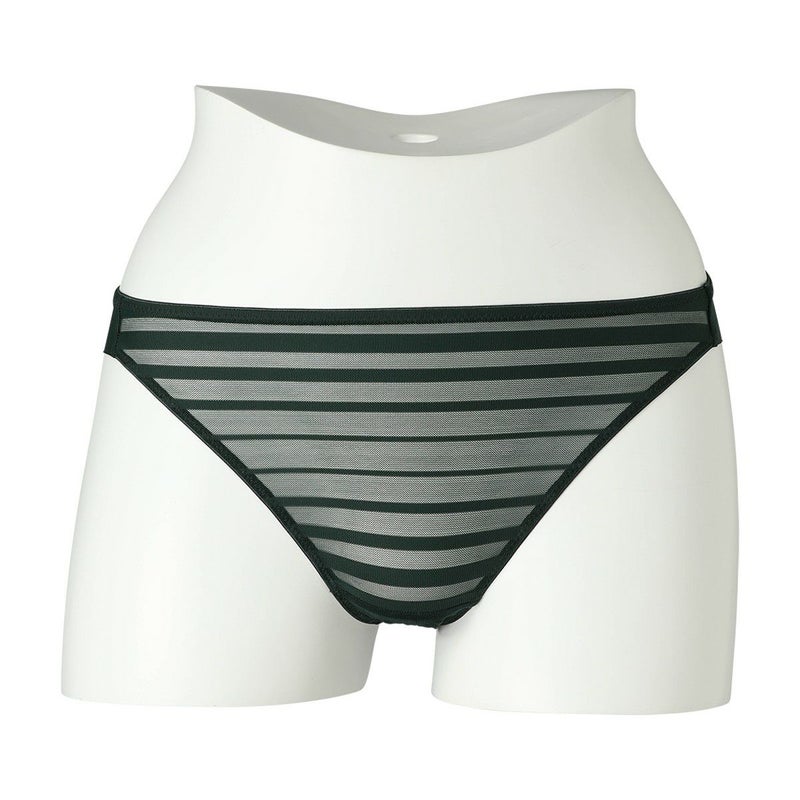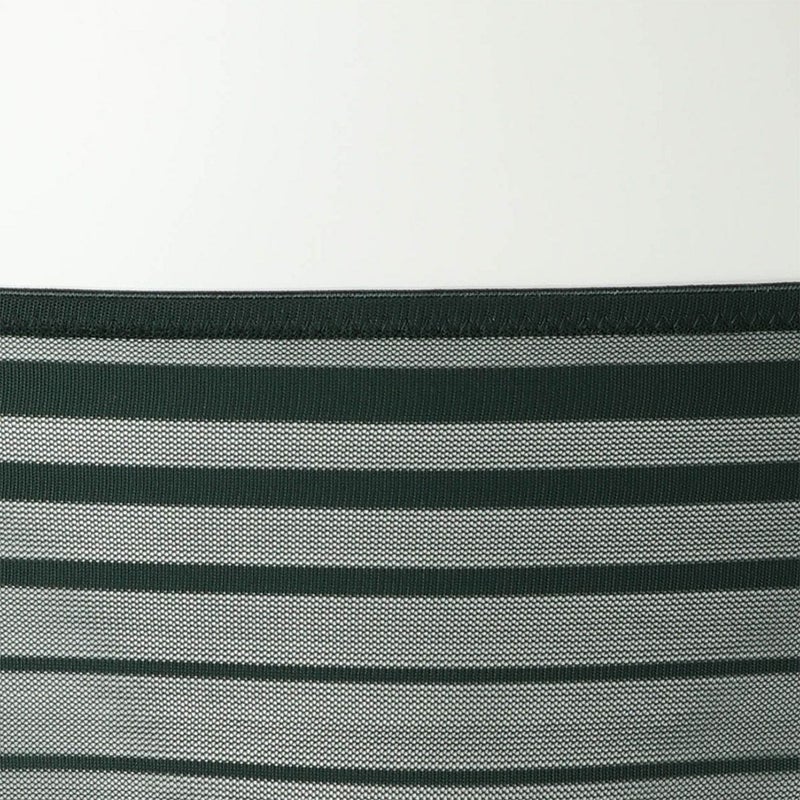 ルーチョ・フォンタナの作品にインスパイアされたコレクション。 - キャンバスを切り裂く- ボーダー柄のストレッチレースはエッジのフラットさを活かし軽やかに仕立てた。 後足口にレースのフラットなエッジを使用。 バックスタイルのラインがアウターに響かず、レースから覗く肌もスタイリッシュな印象に。 マチ肌側は綿天竺使い。