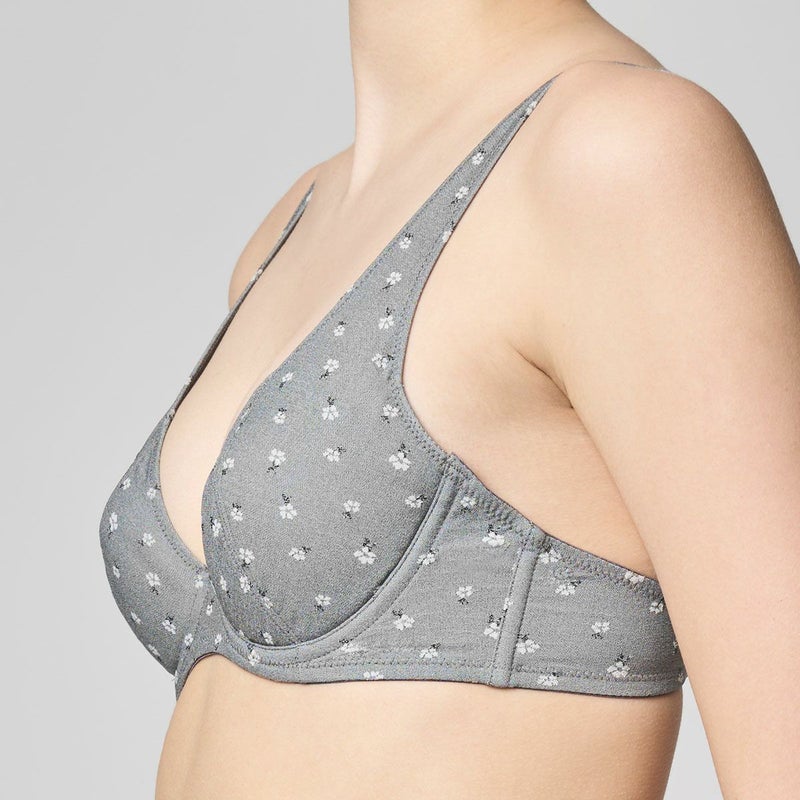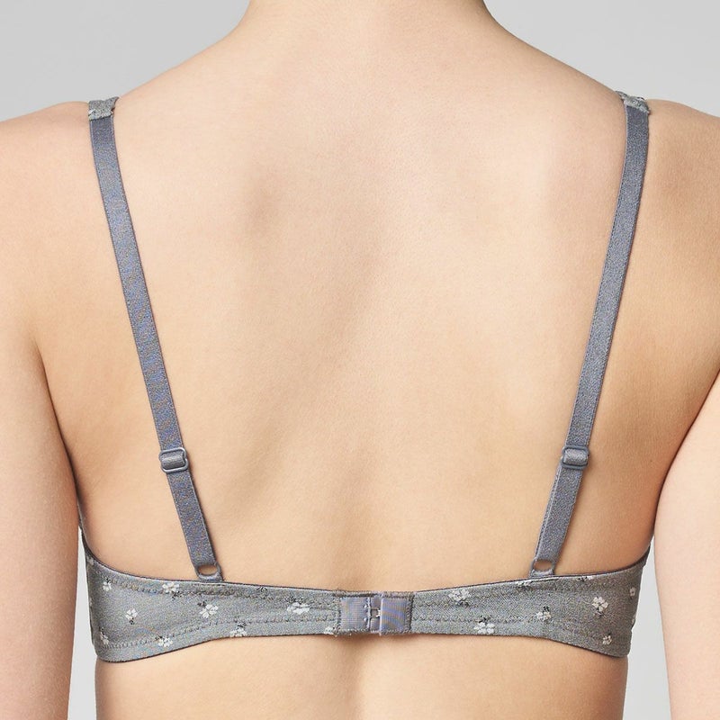 オスカー ニーマイヤーが宙に白い花を描くように建てたモニュメントにインスパイアされたシリーズ。 白い花を織り交ぜたストレッチジャガードはイタリア製のオリジナル布地。 カップサイドから肩までひとつづきのパターンでバストを包み込む構造。布地の程良いストレッチ性も安定感をプラス。 バックストラップは綿混素材。内部は軽量で伸縮性のあるパットを綿天竺でカバーリングし肌に心地良い。カップ肌側は綿天竺。 白い小花柄の織物が大人の肌をチャーミング見せる。