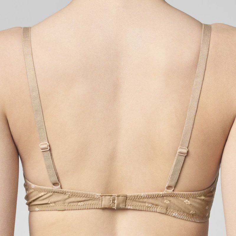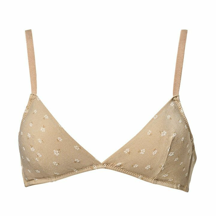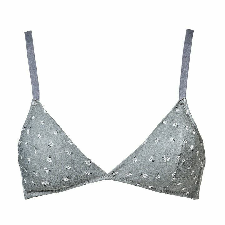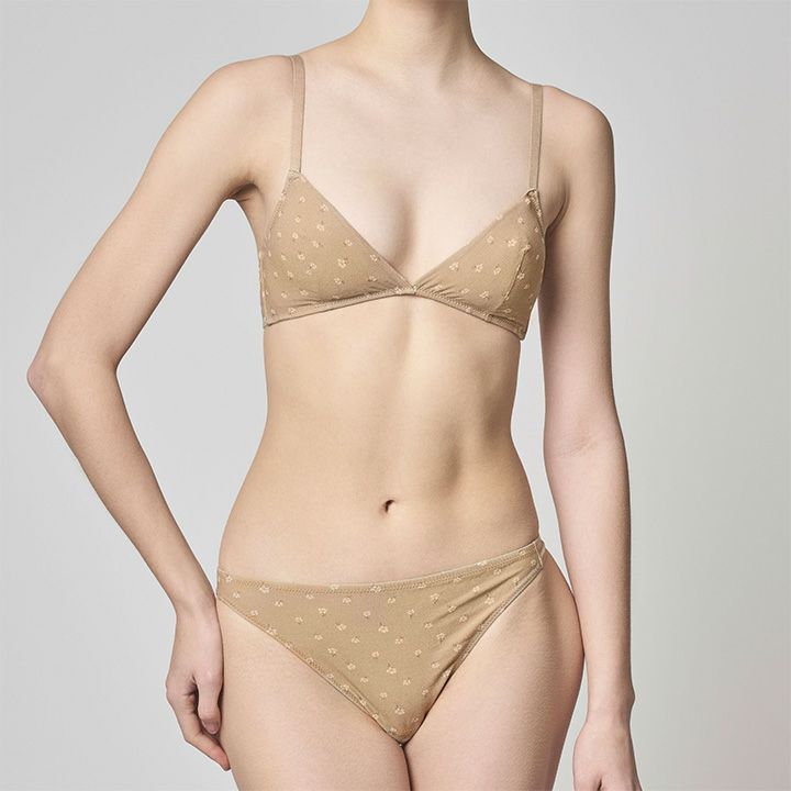 白い小花柄の織物が大人の肌をチャーミングに見せるトライアングルブラ。