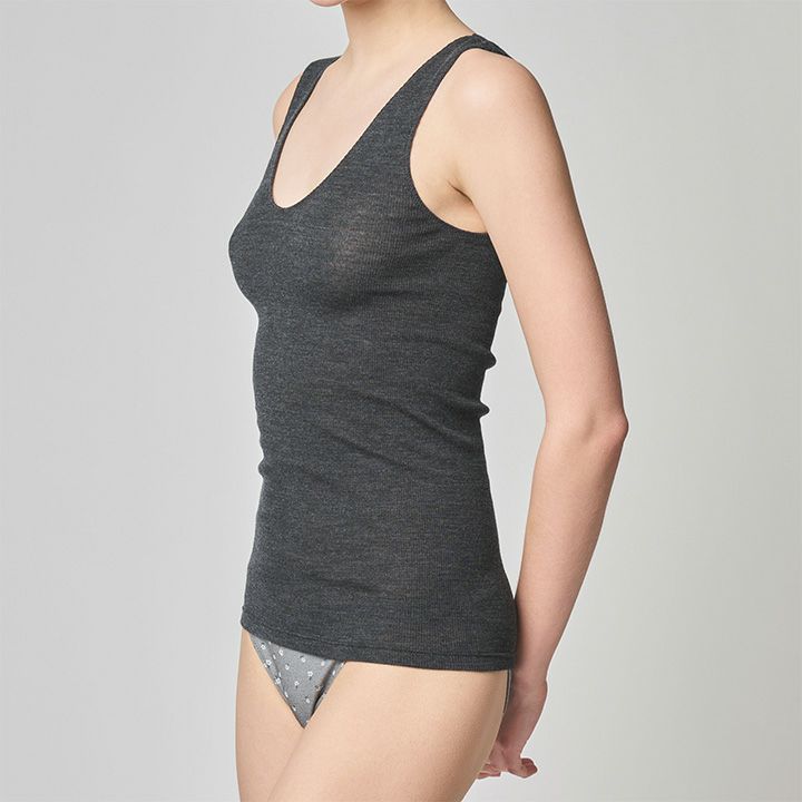 ウール100%のウォッシャブルインナーは肌当り柔らかで保温性抜群の優れもの。 前 Vネック・後 Uネックライン。 襟・袖インゴム仕様。見頃裾は二本針で布地馴染み良く仕立てた。