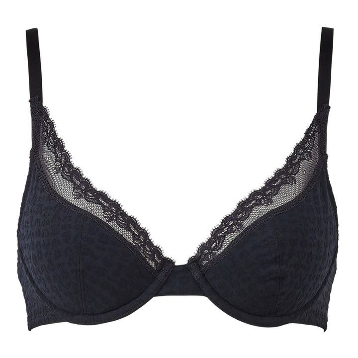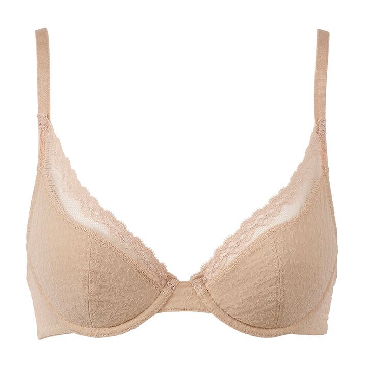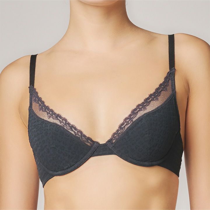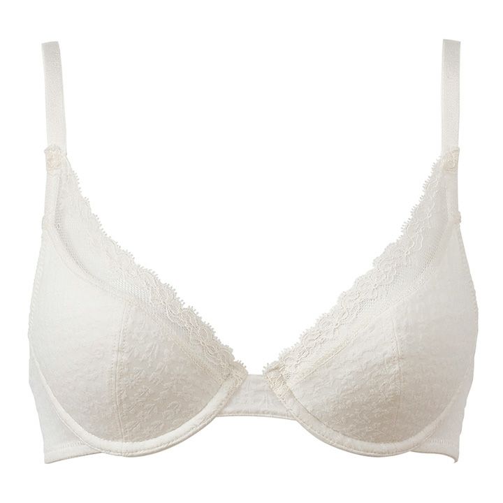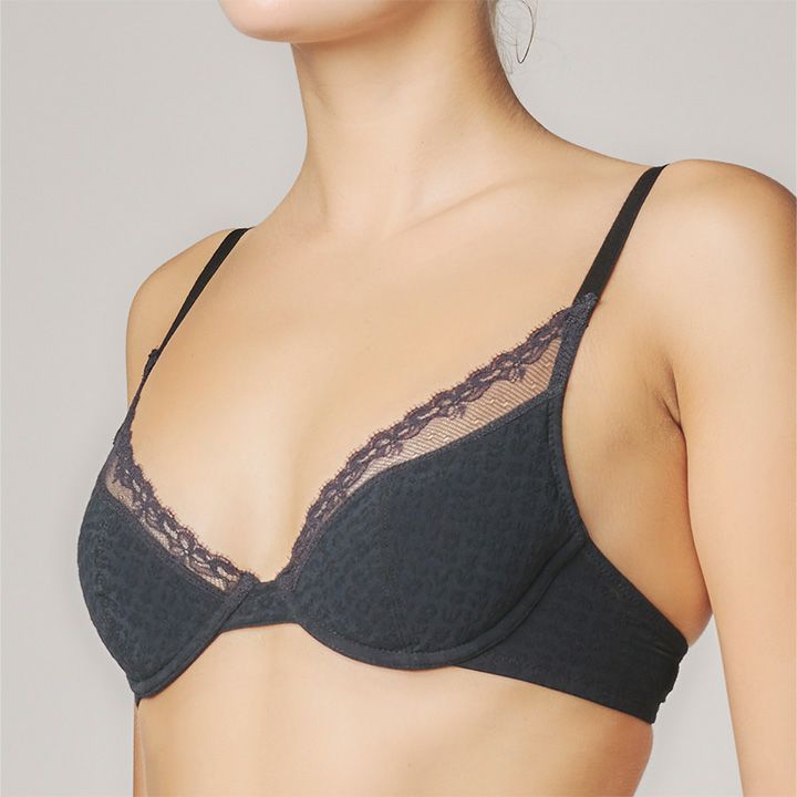チャーミングなリボン柄を描いたフランス製のストレッチリバーレース。 立体的な花柄のストレッチジャガード織物はイタリア製。 ヨーロッパの職人技が奏でる素材の重なりが洗練されたムードを醸す。 ストレッチの効いたジャガード織物がしなやかにボディフィットするメガネタイプの3/4カップブラ。 メガネタイプはカップの土台が無く肌への接地面が少ない為、見た目にも着用感も極めて軽やか。 カップは緩やかにサイドを立ち上げデコルテを美しく見せるカッティングとリボンスカラでエッジを縁取りアクセントに。 綿混のストラップも肌に心地良い。