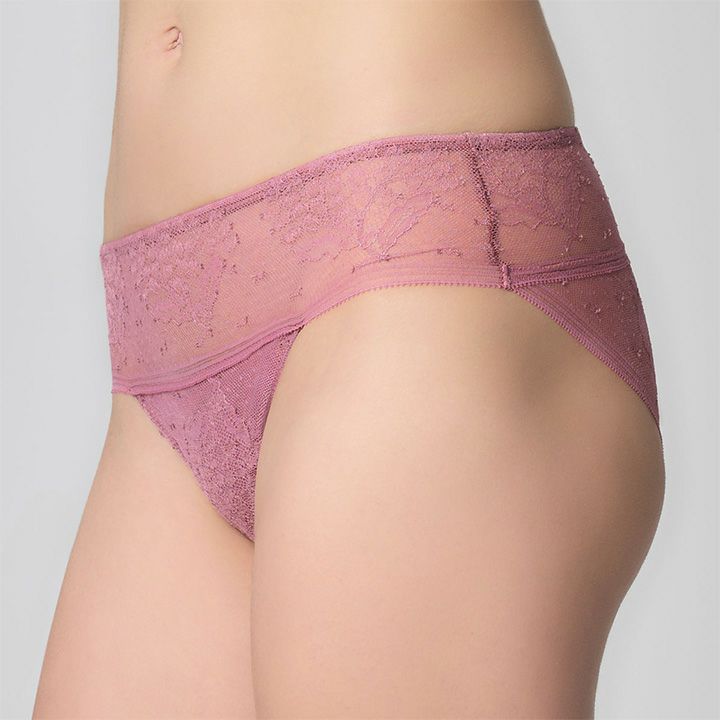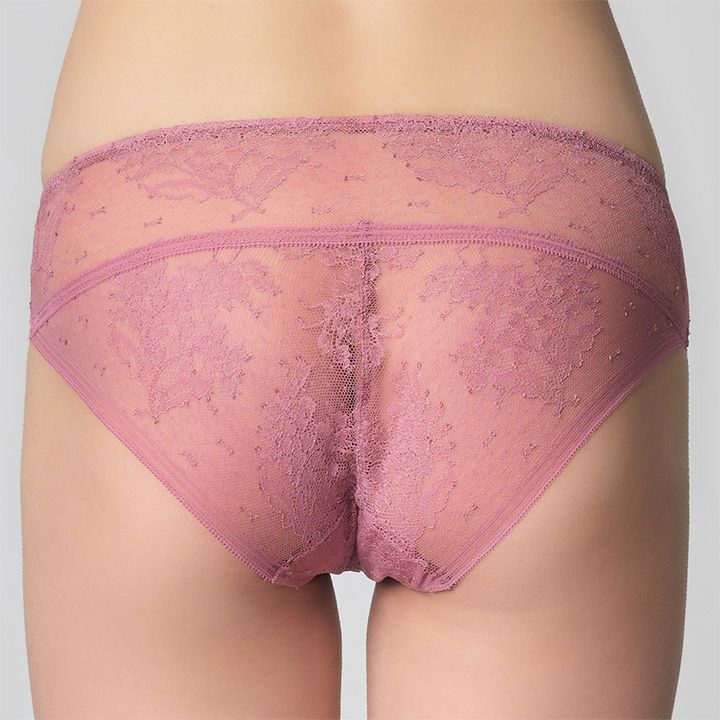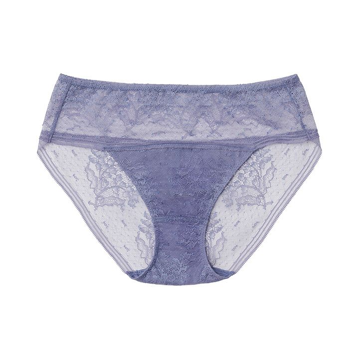 初々しいブルーベルの花を描いたオリジナルのストレッチリバーレース。 軽快な装飾のストレートスカラ・ライトグレイッシュなカラーリングがレースの優美さを引き立てる。 全面リバーレースのスタンダードショーツ。 前身頃のレース下にローン布地を重ねて肌が透けない仕様。マチ肌側は綿天竺。 後身頃のヒップはアウターにラインが響かない様ゴム無し仕様でストレートスカラがフラットに肌に沿う。